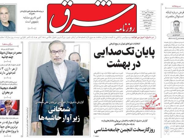 اهتمت الصحف الإيرانية الصادرة اليوم الاثنين 20 أكتوبر (تشرين الأول) بتباين المواقف السياسية تجاه حفل زفاف ابنة أمين المجلس الأعلى للأمن القومي السابق، والأبعاد السياسية والاقتصادية للاتفاق النووي في ظل التصعيد الراهن، والتحديات الاقتصادية.