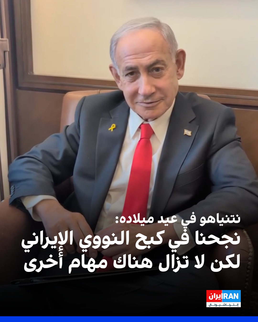 قال رئيس الوزراء الإسرائيلي، بنيامين نتنياهو، تزامناً مع عيد ميلاده السادس والسبعين، إن "أعظم هدية" تلقاها هذا العام هي "الحد من التهديد النووي الإيراني"، لكنه أشار إلى أن هناك "بعض المهام غير المنجزة" ما زالت بانتظار العام الجديد.