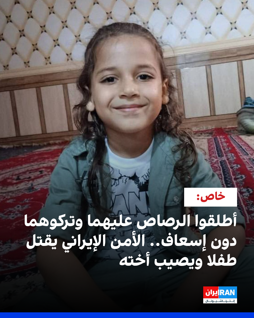 كشفت تقارير حصلت عليها قناة "إيران إنترناشيونال"، أن عناصر من قوات الأمن أطلقوا النار بشكل مباشر على سيارة في مدينة الحويزة، ما أدى إلى إصابة الطفل ذو الفقار شرفي (6 أعوام) وشقيقته "تهاني"، ثم تركوا العائلة الجريحة في الطريق دون إسعافهم، مما تسبب في وفاة الطفل.