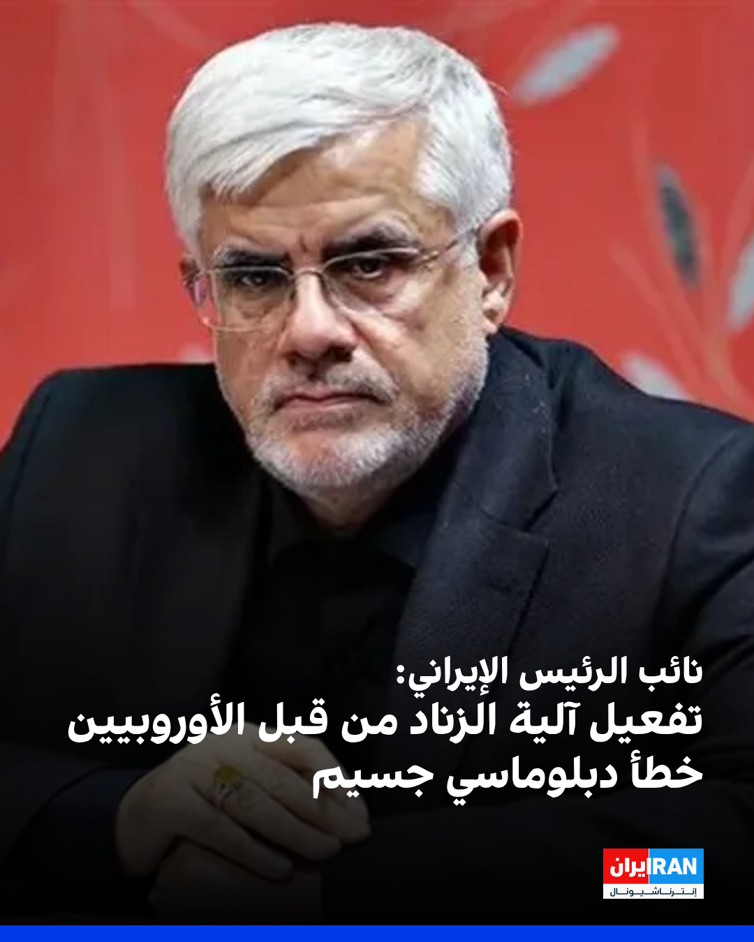 قال نائب الرئيس الإيراني، محمد رضا عارف، إن "آلية الزناد ليس لها أي أساس قانوني"، معتبراً أن "خطوة الدول الأوروبية الثلاث لتفعيلها تمثل خطأً فادحًا في الساحة الدبلوماسية".