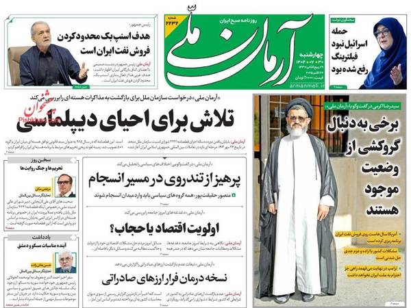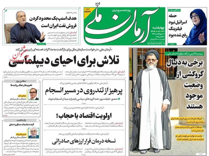 وعلق مصطفى صالح آبادي رئيس تحرير صحيفة "ستاره صبح" الإصلاحية، بقوله: "في ظل الغلاء الشديد، تبدو تصريحات الرئيس بشأن رفع العقوبات وإصلاح العوائق الداخلية واعدة، لكنها لا تتناسب مع التحديات الراهنة. الحلول الواقعية والضمانات الدولية هي السبيل لتحقيق الاستقرار الاقتصادي".