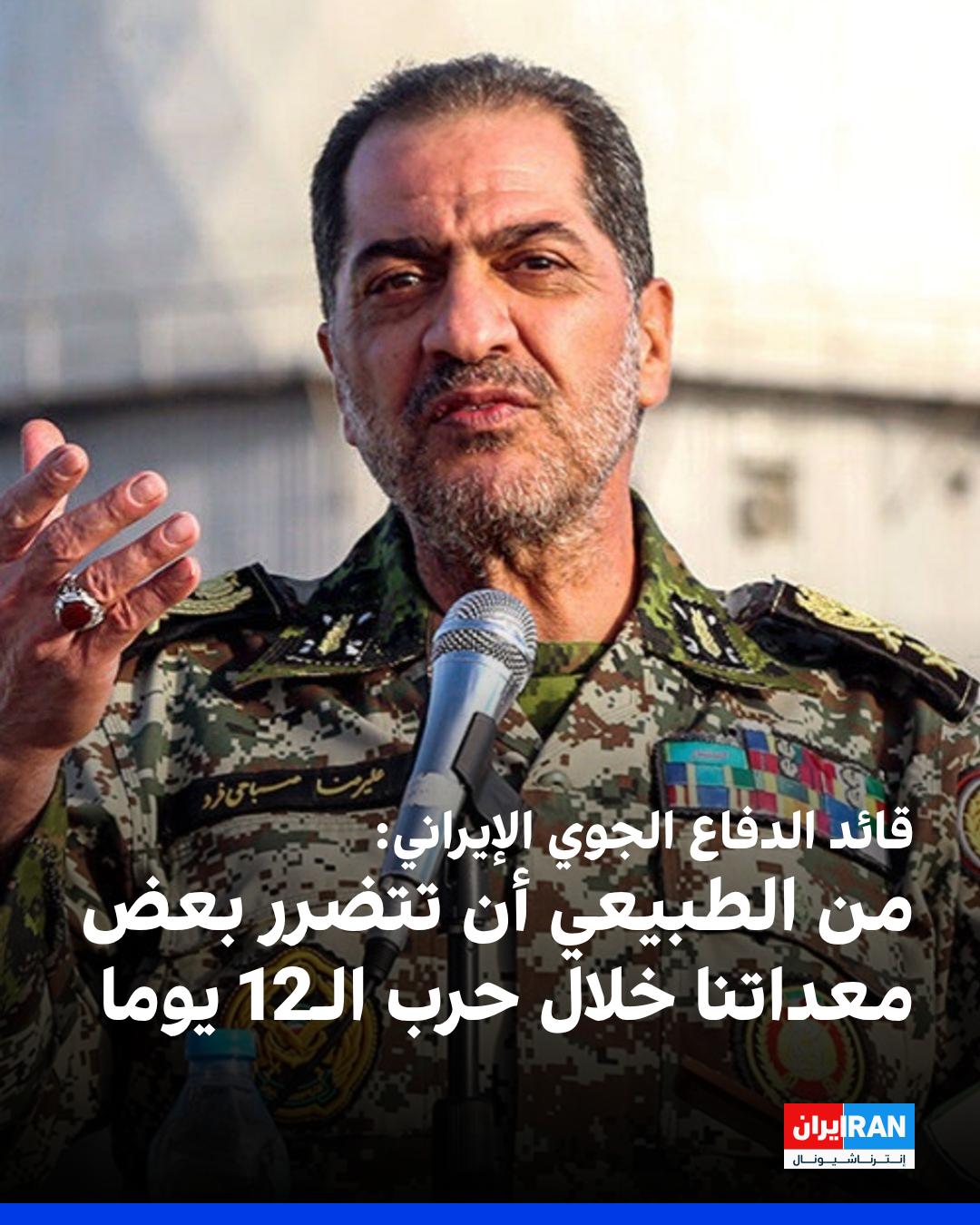 قال قائد مقر "خاتم الأنبياء" التابع للجيش الإيراني، العميد علي رضا صباحي فرد، إنّه "في الحرب التي استمرت 12 يومًا، كان من الطبيعي أن يتسبب العدو في إلحاق أضرار ببعض معداتنا، لكن الأهم أننا تمكّنا في أقصر وقت ممكن من إعادة تأهيل المعدات وإدخال قوات جديدة إلى الميدان".