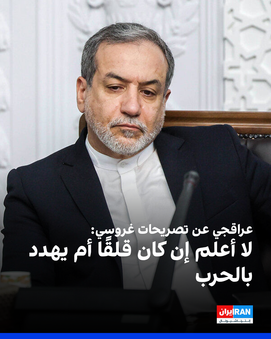 ردّ وزير الخارجية الإيرانية، عباس عراقجي، على التصريحات الأخيرة لرافائيل غروسي، المدير العام للوكالة الدولية للطاقة الذرية، بشأن مخاوفه من احتمال اندلاع حرب جديدة مع إيران، قائلاً: "لا أعلم إن كان قال ذلك بدافع القلق أم كنوع من التهديد".