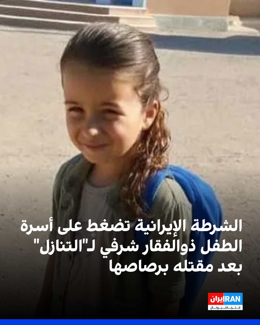 أفادت معلومات حصلت عليها قناة "إيران إنترناشيونال"، بأن قيادة قوى الأمن الإيرانية تمارس ضغوطًا على أسرة الطفل ذوالفقار شرفي، البالغ من العمر 6 سنوات، لحملهم على "التنازل" بعد مقتله برصاص عناصر الشرطة.