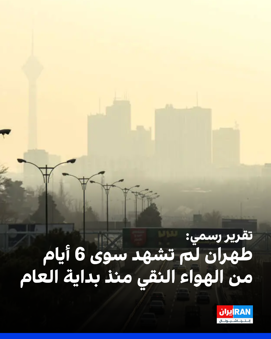 أعلنت شركة مراقبة جودة الهواء في طهران أنّ العاصمة الإيرانية لم تسجّل سوى ستة أيام فقط من الهواء النقي، منذ بداية العام.