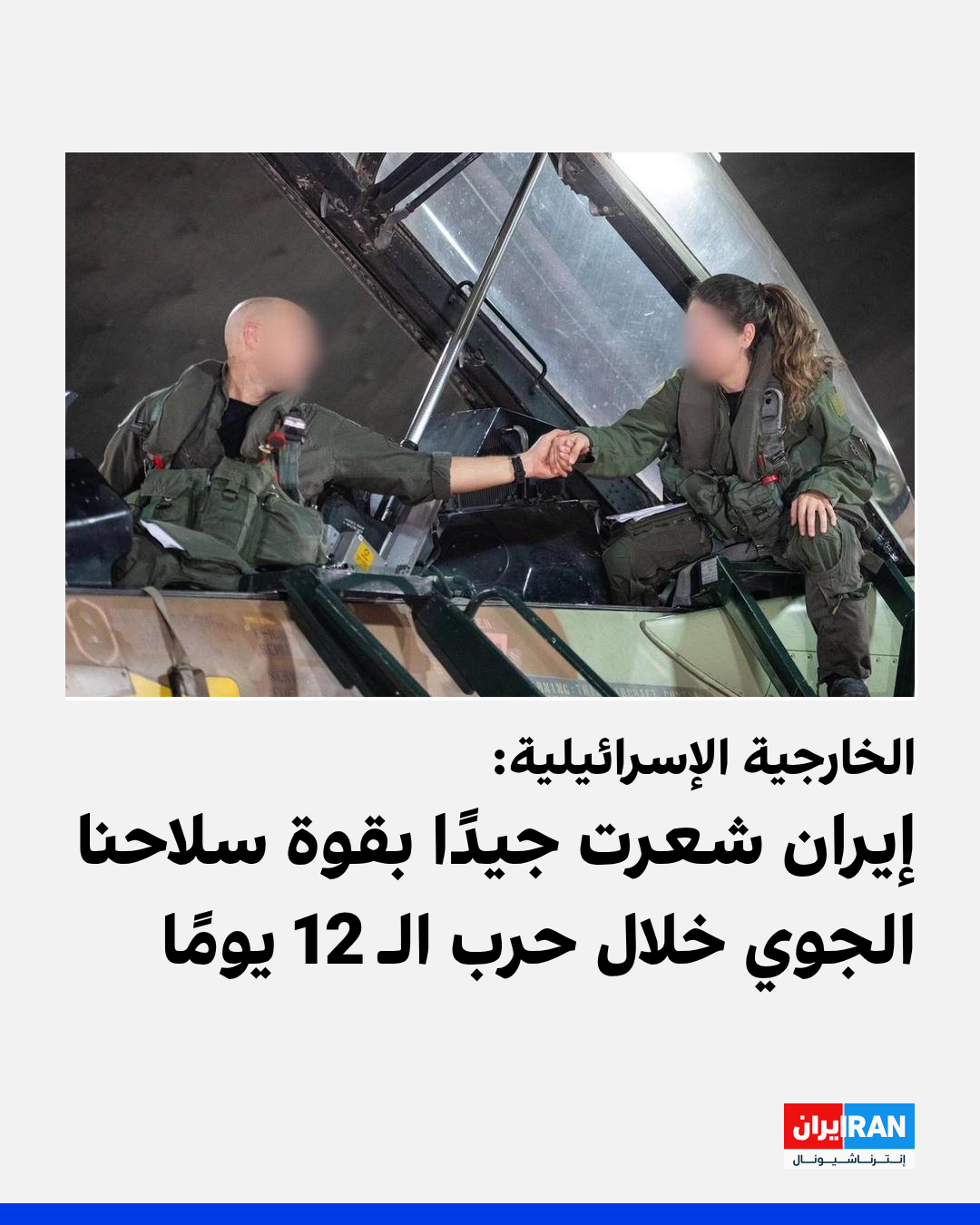 نشرت الصفحة الفارسية لوزارة الخارجية الإسرائيلية على منصة "إكس" (تويتر سابقًا) صورةً لاثنين من الطيارين الإسرائيليين، وكتبت: "سلاح الجو الإسرائيلي مصنف ضمن قائمة أقوى عشرة أسلحة جو في العالم".