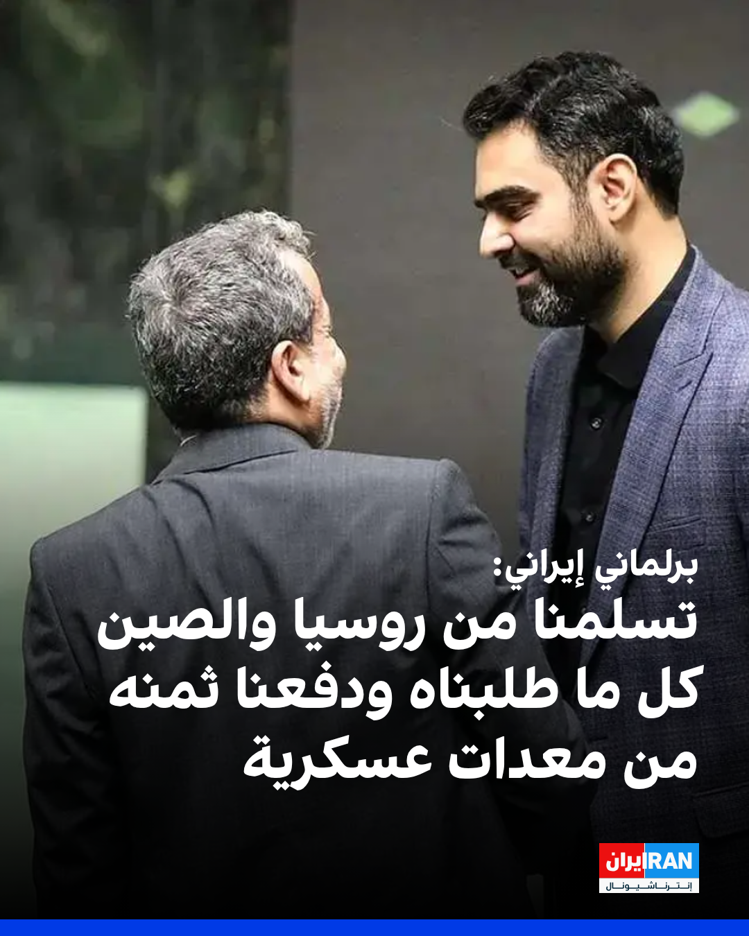 وأوضح ثابتي أن "كل ما طلبناه من موسكو وبكين وتم دفع ثمنه، وصلنا بالفعل"، مضيفًا أن "المعدات العسكرية التي لم تُسلَّم بعد لم تُرفض أو تُقيَّد، بل أكد الطرفان استعدادهما لتوفيرها فور استكمال الدفعات المالية".