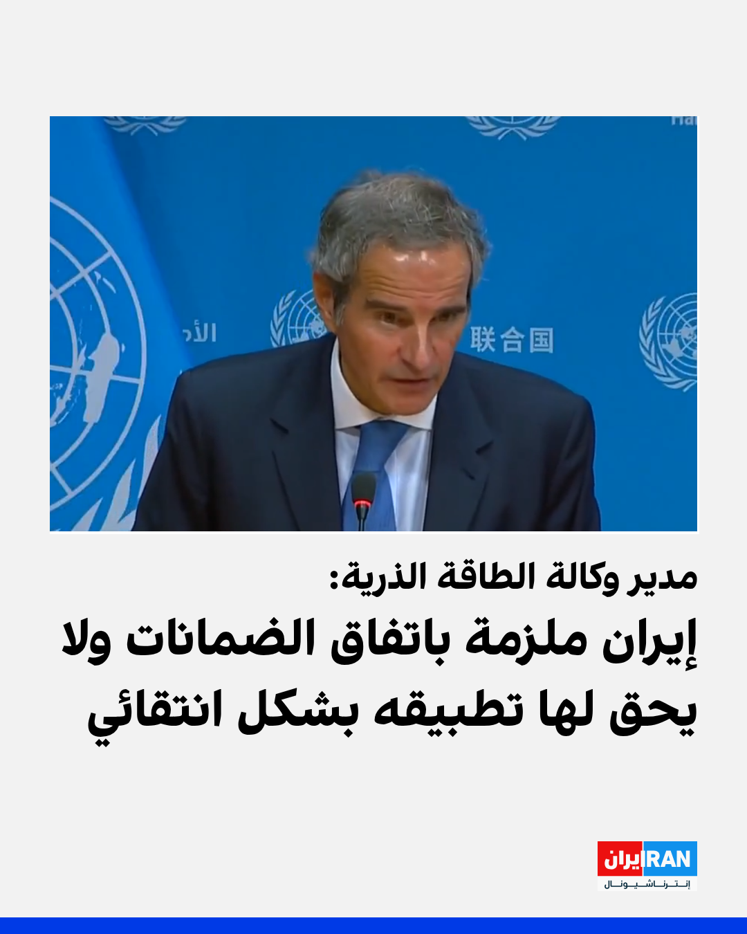 قال المدير العام للوكالة الدولية للطاقة الذرية، رافائيل غروسي، إن إيران ما زالت ملزمة بالامتثال لاتفاق الضمانات الشاملة، مؤكدًا أن "هذا الاتفاق ليس طوعيًا، ولا يمكن لإيران أن تقرر تطبيقه أو تجاهله وفقًا للظروف السياسية أو اليومية".