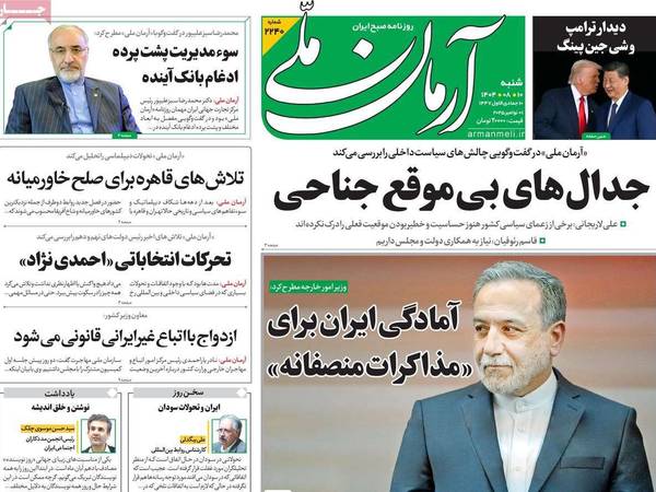 سلطت الصحف الإيرانية الصادرة، يوم السبت 1 نوفمبر (تشرين الثاني)، الضوء على عدد من القضايا الداخلية والخارجية، مشيرة إلى الانقسام العميق في المشهد السياسي، وأهمية الموازنة بين العلاقات شرقًا وغربًا، وأثر العولمة الثقافية على الهوية الوطنية.