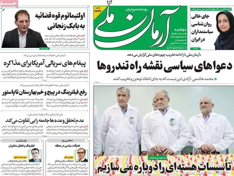 وعلى صعيد المفاوضات النووية، أكد المحلل الدولي، مرتضى مكي، في مقال بصحيفة "آرمان ملي" الإصلاحية، أن الوضع السياسي والاقتصادي الحالي يشير إلى تعثر المفاوضات النووية بين إيران والغرب، بينما تسعى دول وسيطة لفتح قنوات الحوار وسط استمرار الضغوط العسكرية والسياسية على إيران.