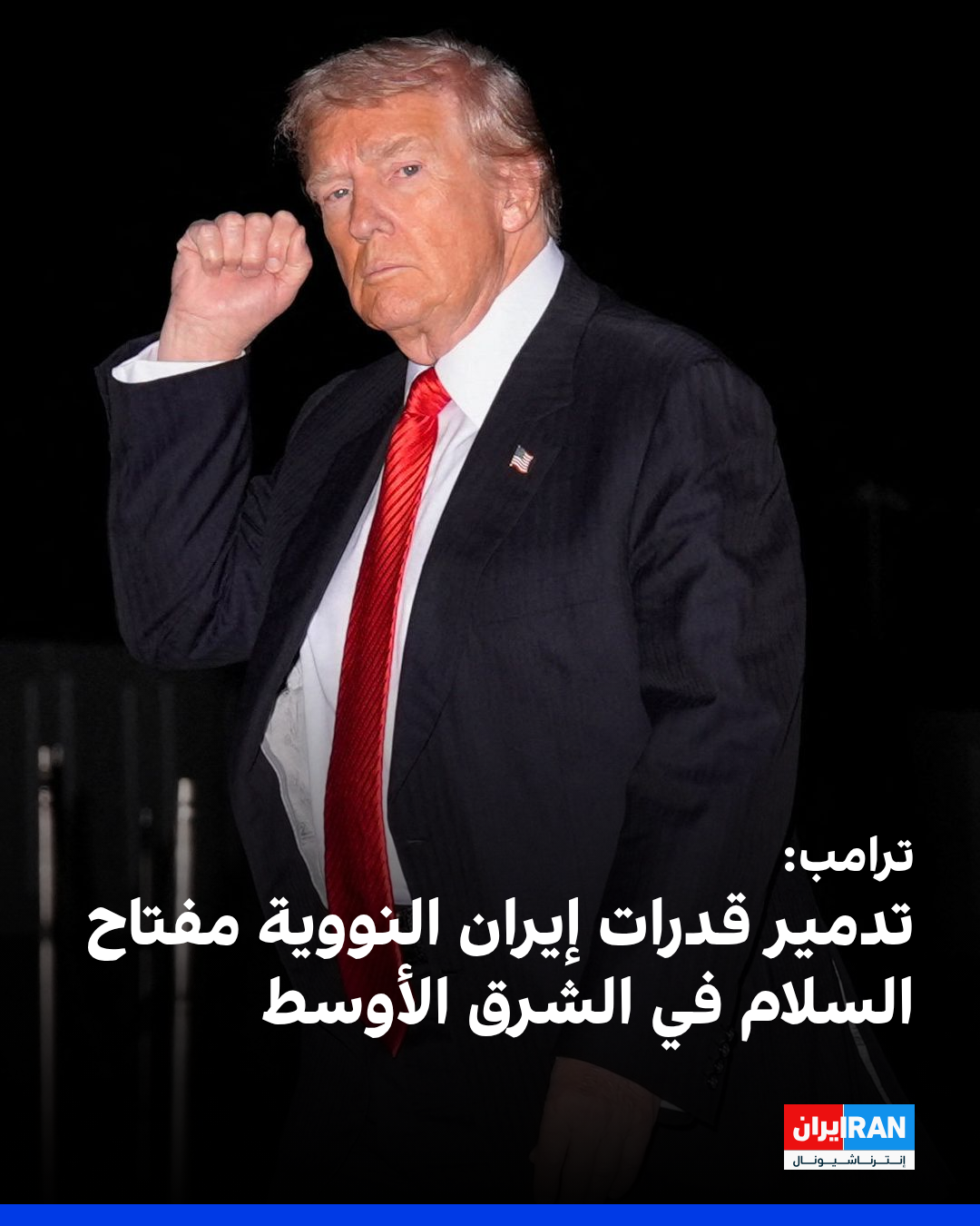 وردًا على سؤال حول تقييمه للوضع الحالي، قال ترامب إنه على يقين تام بأن القدرات النووية لإيران التي كانت تمكّنها من إنتاج قنبلة ذرية قد دُمّرت بالكامل".