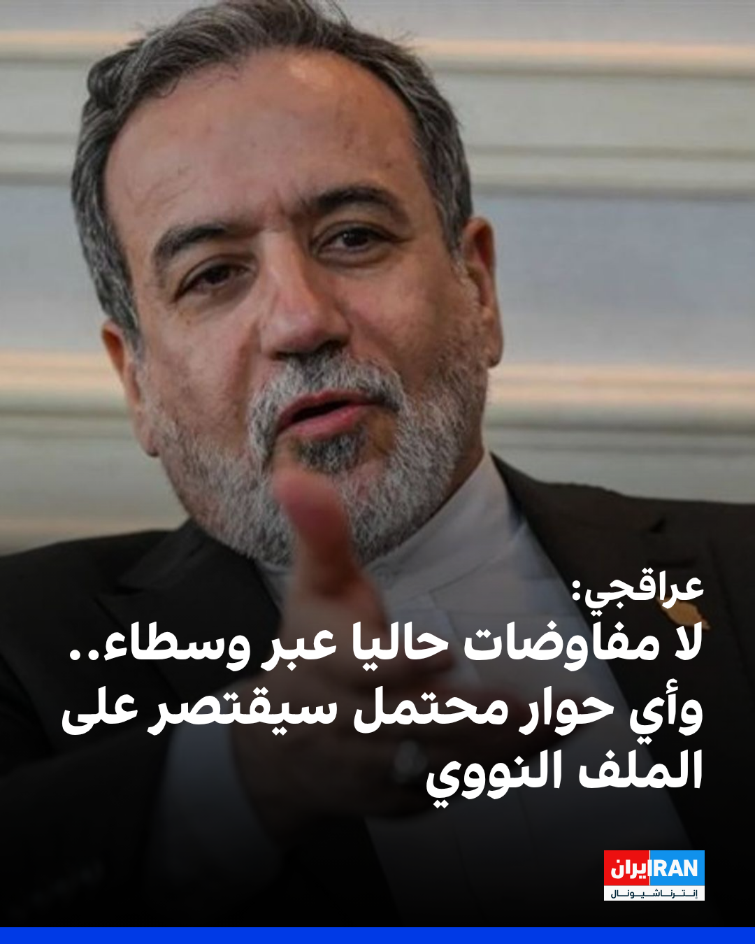 صرّح وزير الخارجية الإيرانية، عباس عراقجي، بأن طهران لا تملك حالياً أي خطة لإجراء محادثات مع الدول الغربية تستلزم وجود وسيط.