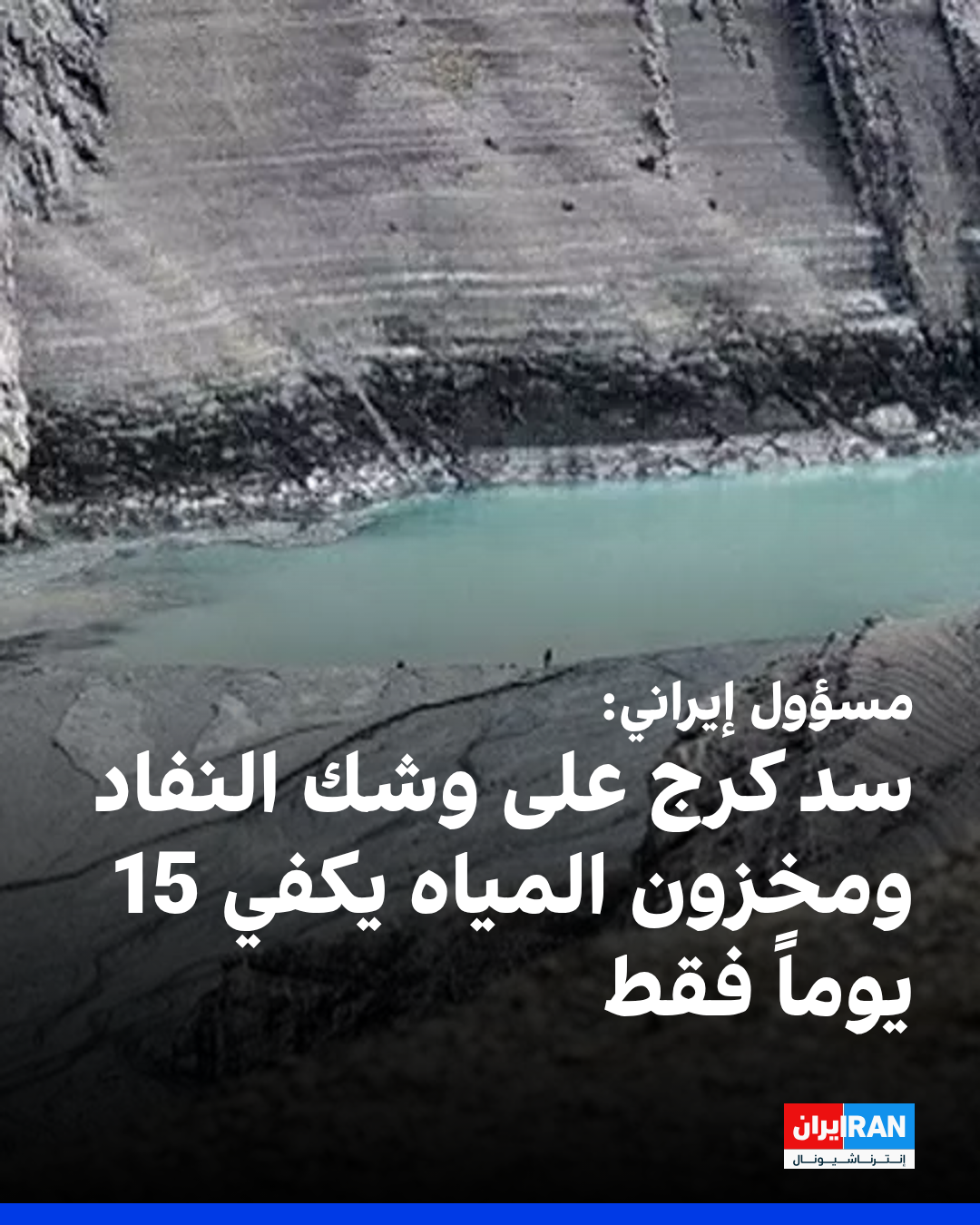 أعلن مهدي مقصودي، مدير شؤون المياه في محافظة كرج، أن ما تبقّى من سعة سد كرج البالغة 180 مليون متر مكعب لا يتجاوز سبعة في المئة، محذّراً من أن هذه الكمية ستنفد خلال الأيام المقبلة. وقال إن استمرار الوضع الحالي يعني أن موارد المياه في كرج لن تكفي لأكثر من 15 يوماً.
