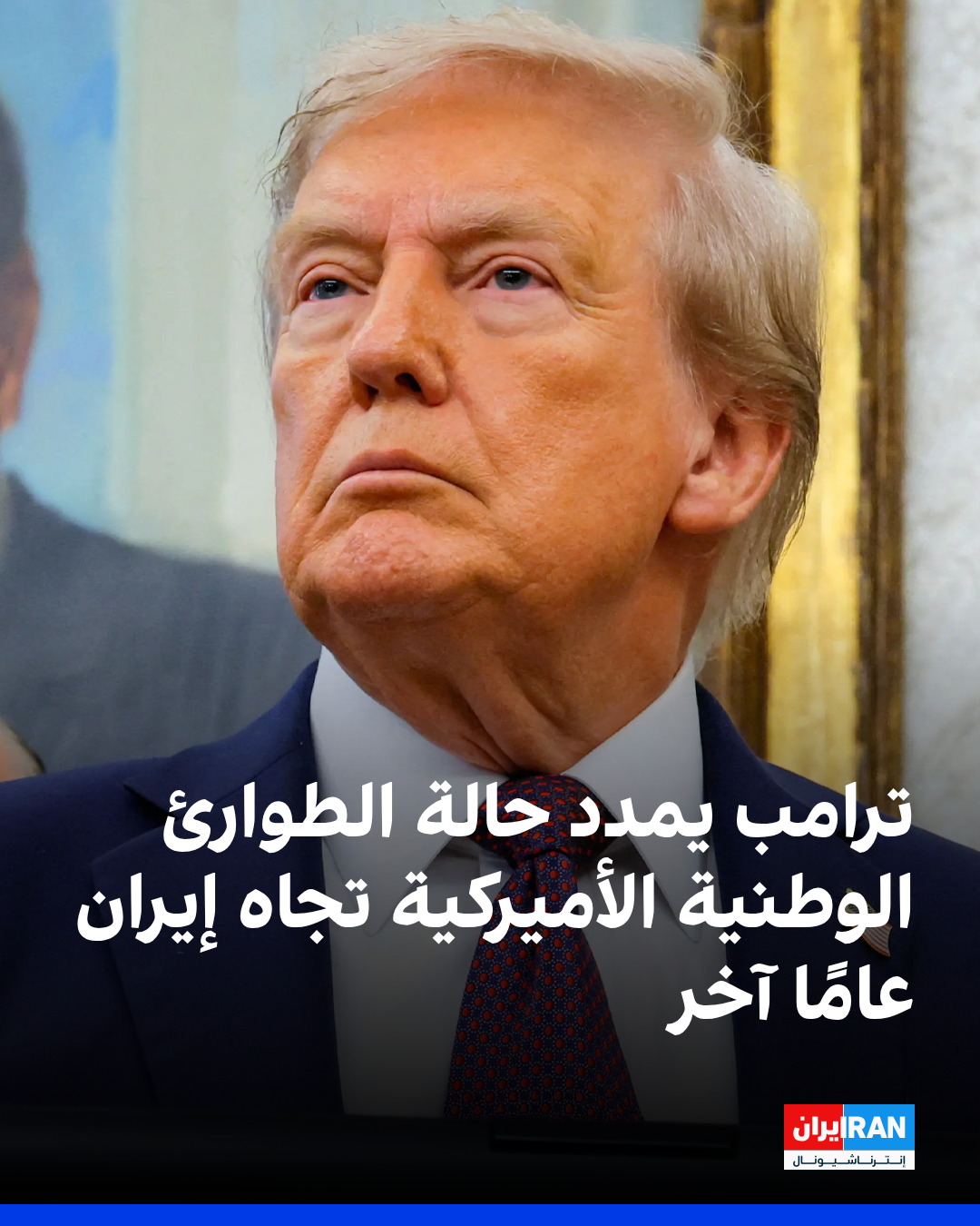 مدّد الرئيس الأميركي، دونالد ترامب، العمل بالأمر التنفيذي رقم 12170، الذي يعلن حالة الطوارئ الوطنية تجاه إيران، لمدة عام إضافي.