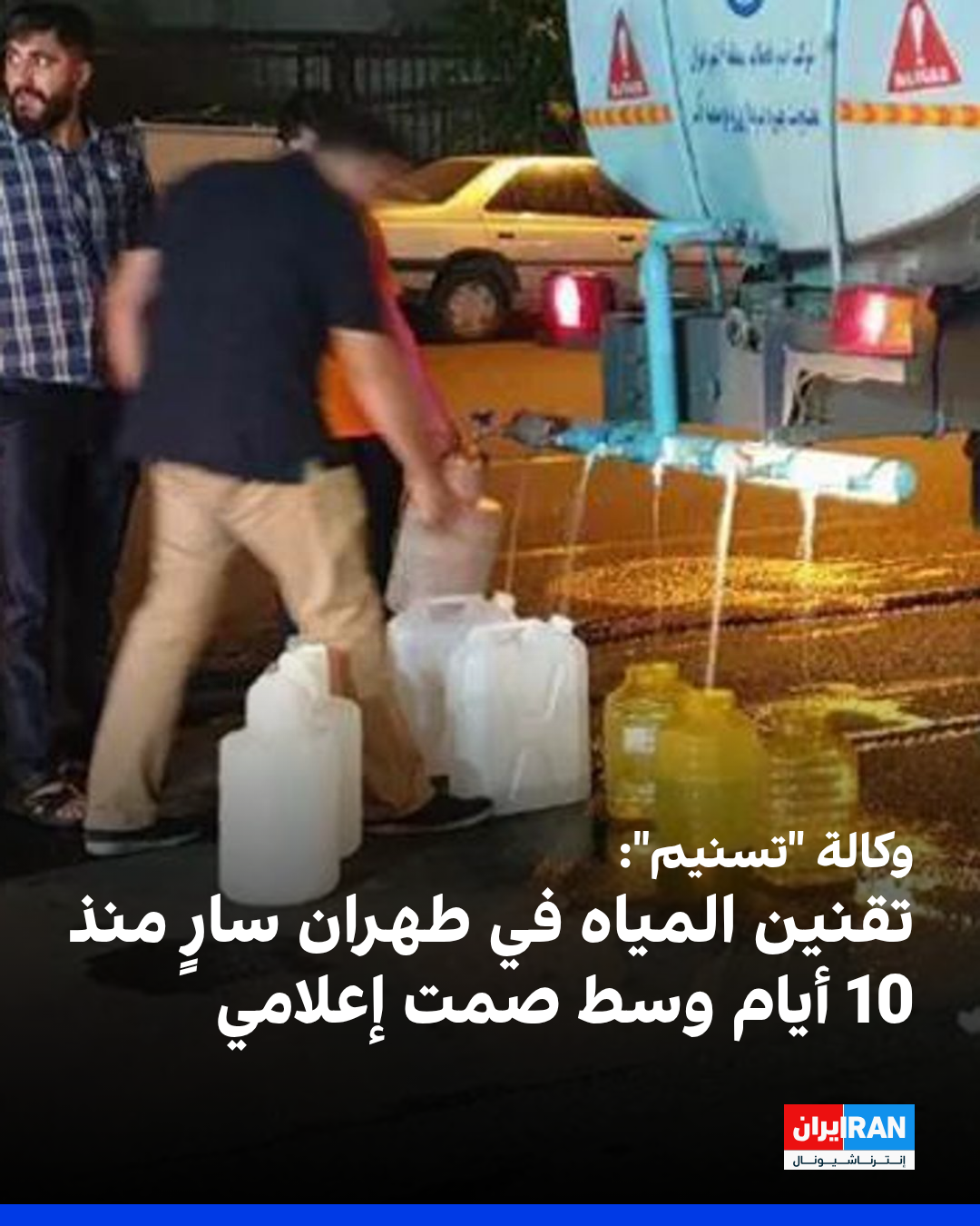 كشفت وكالة أنباء "تسنيم"، التابعة للحرس الثوري الإيراني، عن أن "إجراءات تقنين وقطع إمدادات المياه في العاصمة طهران قد بدأت منذ نحو عشرة أيام وسط صمت إعلامي"، في إشارة إلى حالات القطع الليلي للمياه.