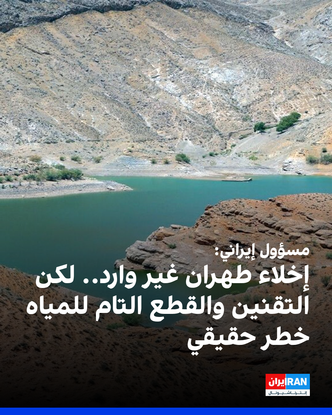 نفى مسؤول مشاريع الدراسات المائية في إيران، مسعود مجرب، ما يتم تداوله حول ضرورة إخلاء العاصمة طهران بسبب الشح المائي، واصفًا إيّاه بأنه "كلام غير متخصص"، محذرًا في الوقت ذاته من خطورة "أزمة المياه وإمكانية فرض نظام الحصص والقطع الكامل للإمدادات".