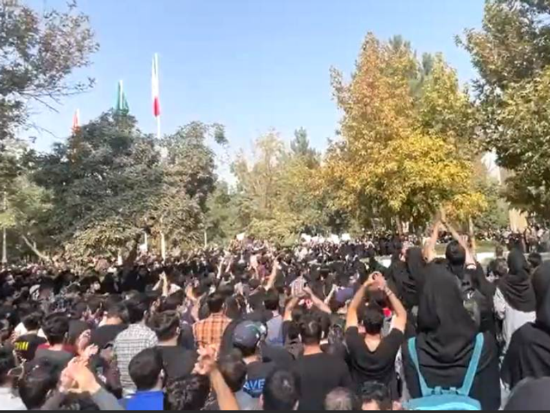 وقد نُظّم احتجاج يوم 11 أكتوبر الماضي اعتراضًا على "التحرش بطالبة إيرانية من قِبل طالب عراقي"، وكذلك على قرارات الجامعة بقبول طلاب من الجنسية العراقية. وأعرب المحتجون عن قلقهم مما وصفوه بـ "التهديد الأمني الناتج عن وجود بعض الطلاب المرتبطين بجماعات عسكرية أجنبية"، وطالبوا إدارة الجامعة بتوضيحات.
