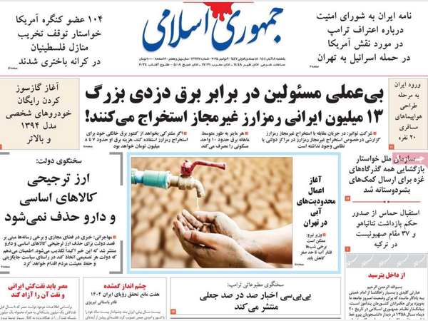 "آرمان ملی": القرارات السياسية أوصلت إيران إلى حافة العطش