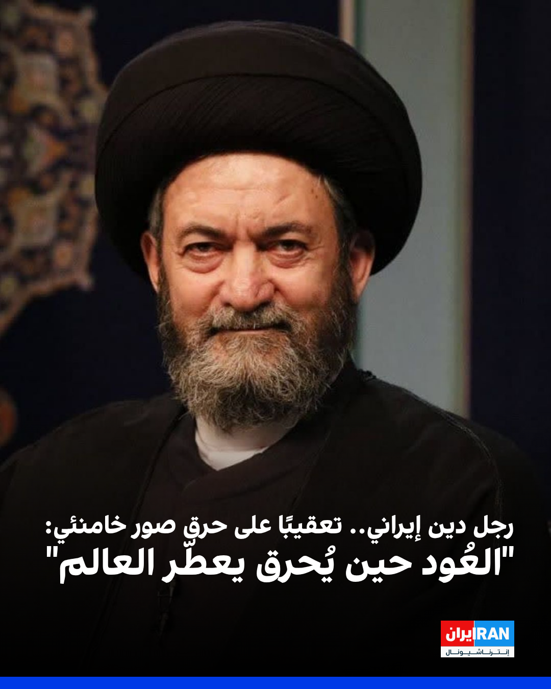 في أعقاب قيام عدد من الأشخاص، بينهم شخصيات معروفة في مناطق مختلفة من العالم بإحراق صور المرشد الإيراني، علي خامنئي، علّق حسن عاملي، ممثل خامنئي وإمام جمعة مدينة أردبيل، على الحدث بمنشور عبر منصة إكس، كتب فيه: "العُود حين يُحرق يعطّر العالم، والشمعة حين تحترق يتراقص حولها العشاق".