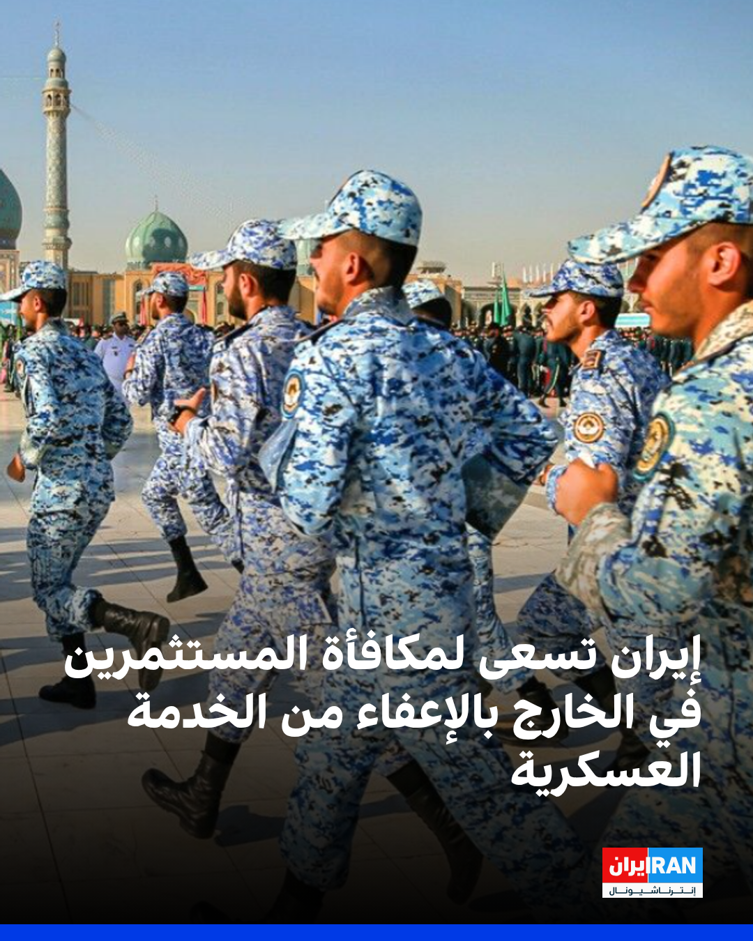 قال مهدی حیدري، نائب وزير الاقتصاد الإيراني، إن الحكومة تسعى لتنفيذ خطة تسمح للمستثمرين الإيرانيين المقيمين في الخارج بحساب استثماراتهم داخل البلاد كبديل عن الخدمة العسكرية. وأضاف: "أي إيراني مقيم في الخارج يمكنه الحصول على نهاية الخدمة إذا استثمر في وطنه".