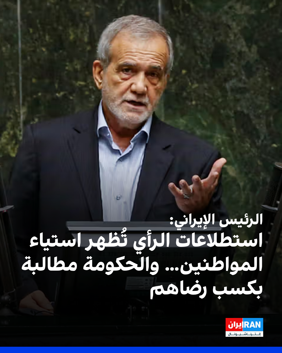 قال الرئيس الإيراني مسعود بزشکیان، اليوم الثلاثاء 11 نوفمبر، في البرلمان: "أظهرت الاستطلاعات التي أُجريت في المحافظات أنّ الناس غير راضين عن الحكومة، ويجب أن نتمكّن من كسب رضاهم".