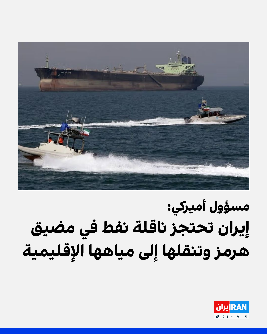 قال مسؤول أميركي إن إيران قامت باحتجاز ناقلة النفط "تالارا" التي ترفع علم جزر مارشال في مضيق هرمز، ونقلتها إلى مياهها الإقليمية.