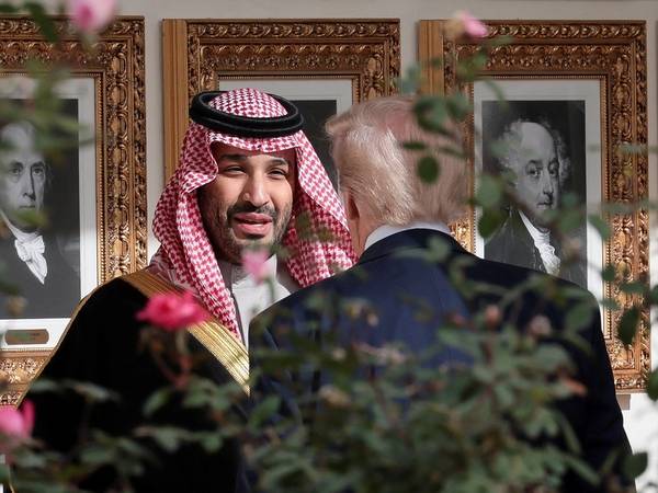استقبل الرئيس الأمريكي دونالد ترامب يوم الثلاثاء 27 نوفمبر، ولي العهد السعودي محمد بن سلمان في مراسم رسمية في البيت الأبيض، تخللها تحليق مقاتلات أمريكية فوق المبنى في مشهد اعتُبر دلالة على أهمية الزيارة، وهي الأولى لولي العهد إلى واشنطن منذ سبعة أعوام.