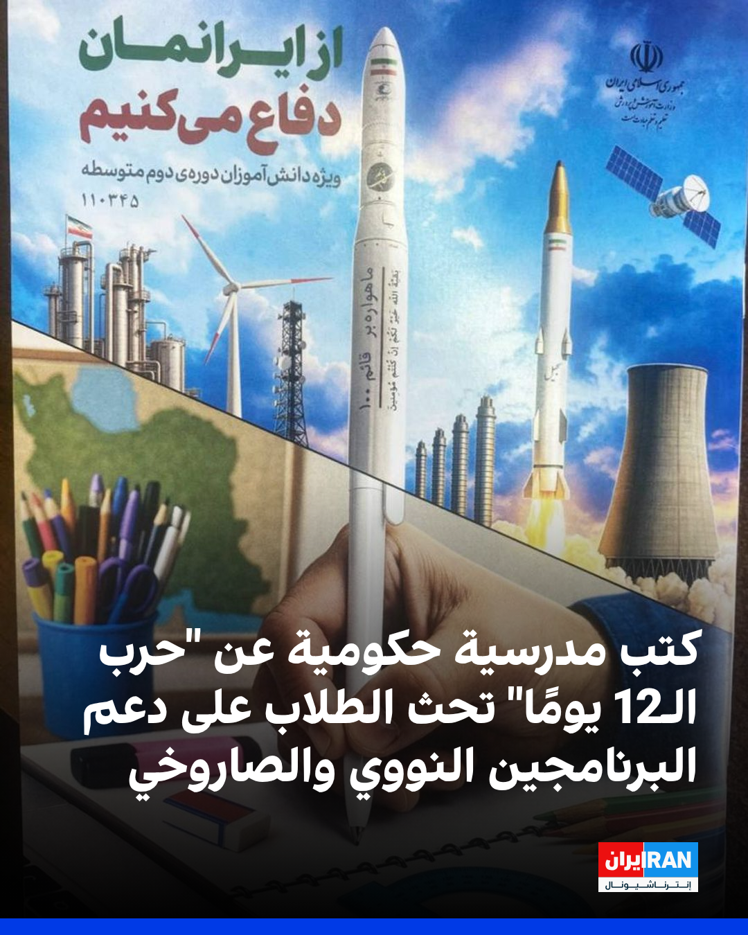 على الرغم من بدء العام الدراسي الجديد، وما زال العديد من الكتب المدرسية الأساسية لم تصل بعد إلى الطلاب، إلا أن السلطات وزعت بسرعة كتبًا خاصة بحرب الـ12 يومًا بين إيران وإسرائيل على الطلاب.