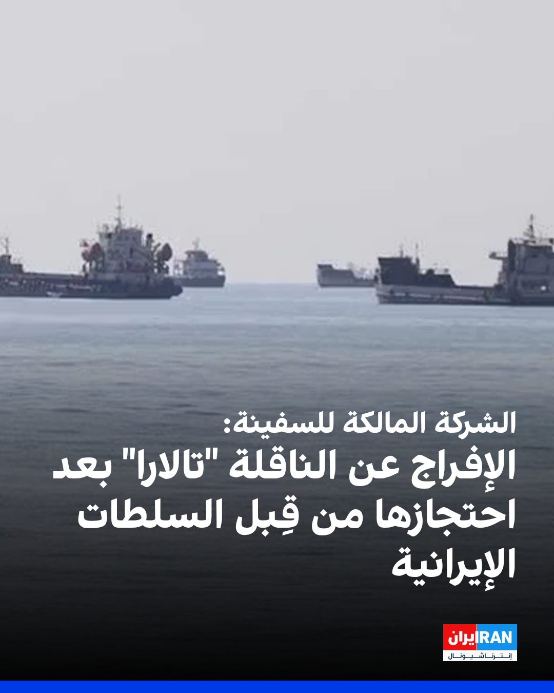 أعلنت شركة "كولومبيا شيب مانجمنت"، المالكة لناقلة النفط "تالارا"، التي ترفع علم جزر مارشال، أن "إيران أطلقت سراح الناقلة يوم الأربعاء 19 نوفمبر (تشرين الثاني)"، مؤكدة أن "جميع أفراد الطاقم الـ 21 بحالة صحية جيدة".