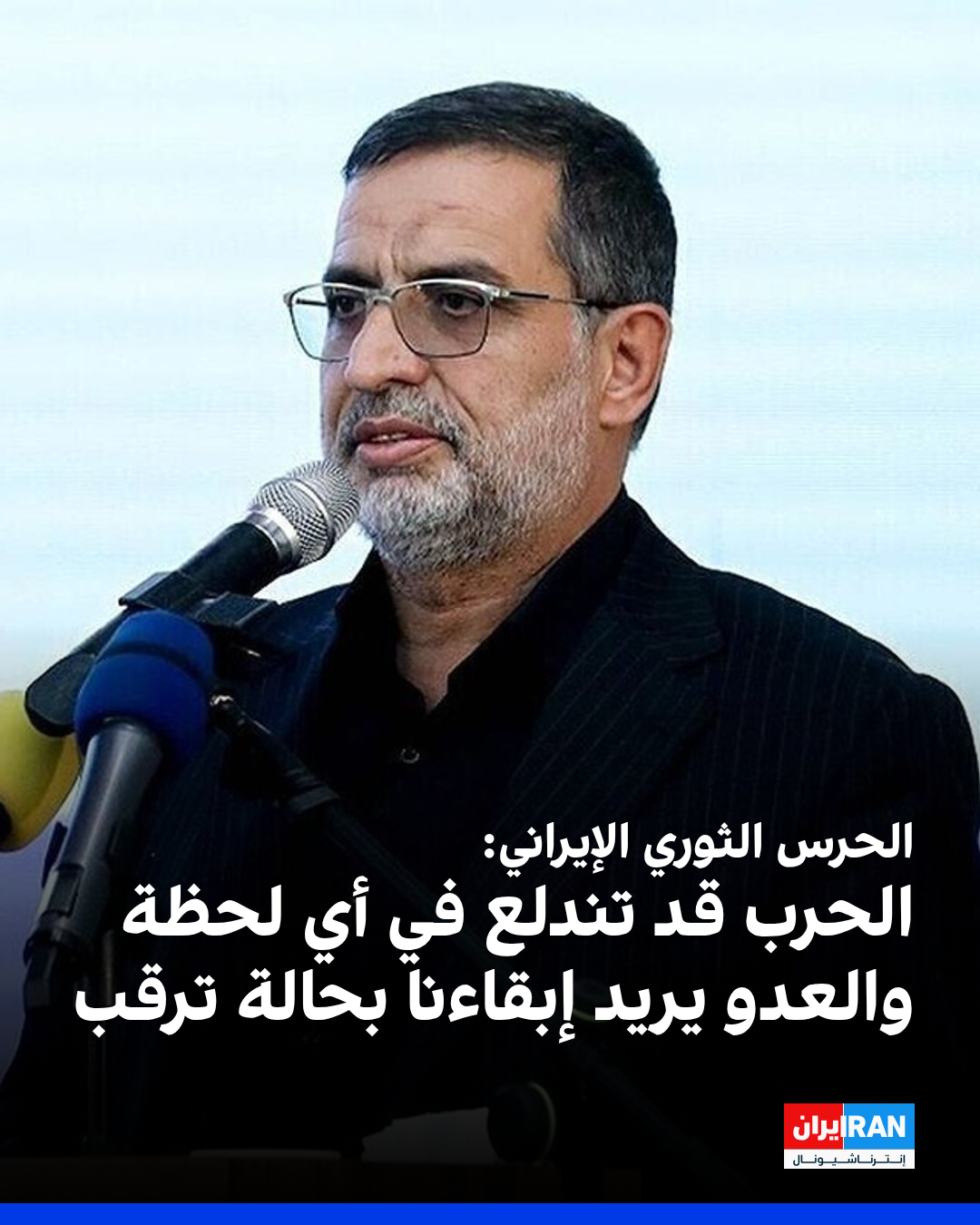 قال المتحدث باسم الحرس الثوري الإيراني، علي محمد نائيني: "افتراضنا هو أن الحرب قد تندلع في أي لحظة، وعلينا كقوات مسلحة أن نفكّر بطريقة متشائمة".