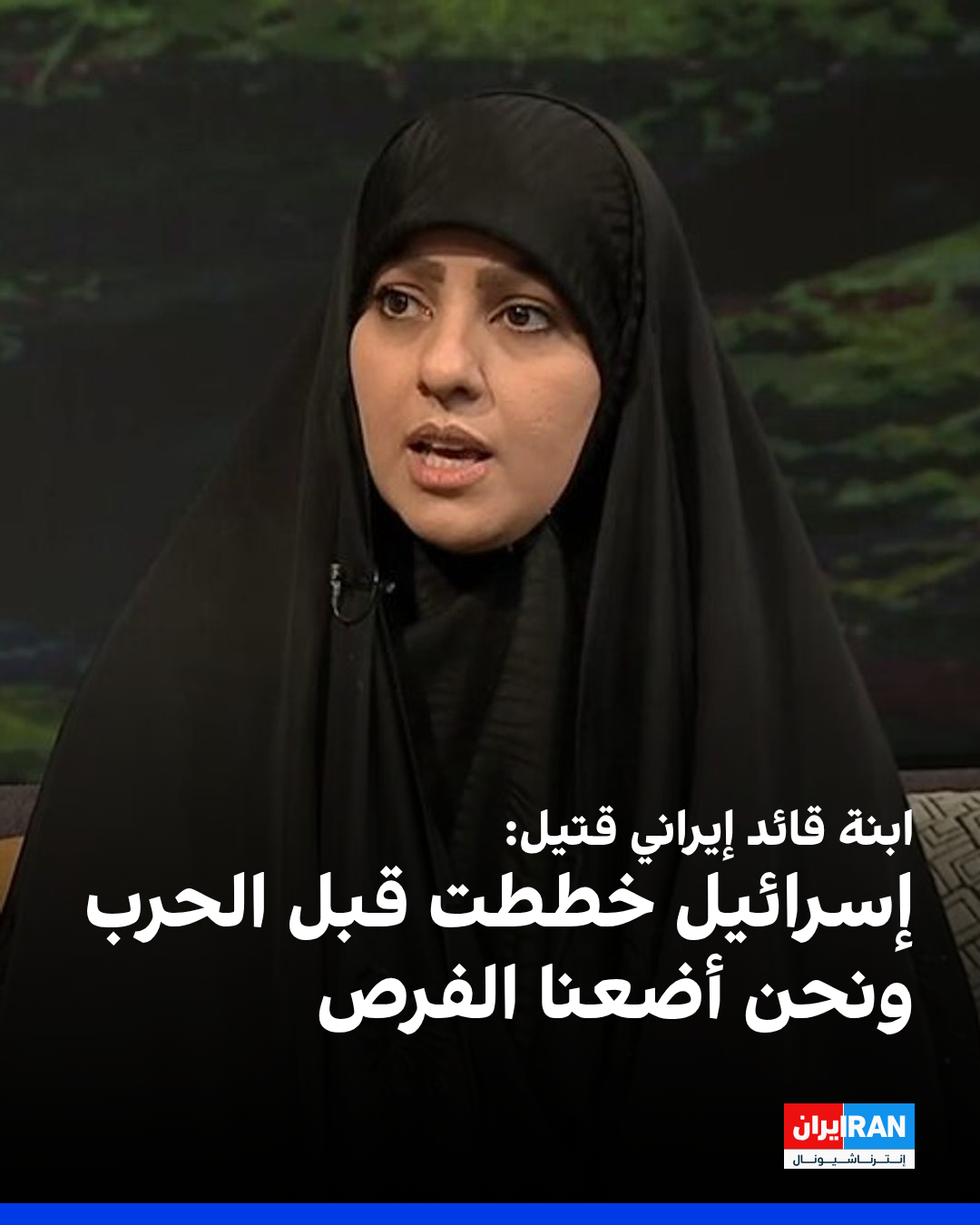 قالت مهدية شادماني، ابنة علي شادماني، قائد مقر "خاتم الأنبياء"، الذي قُتل خلال حرب الـ 12 يومًا: "رغم أنه لا يمكن الاعتماد على المنظمات الدولية، فإنه يمكن من خلال توعية الرأي العام، وخلق عداوة لإسرائيل، والدخول الذكي في الملفات الحساسة على الصعيد الدولي، تحقيق تأثير فعّال".