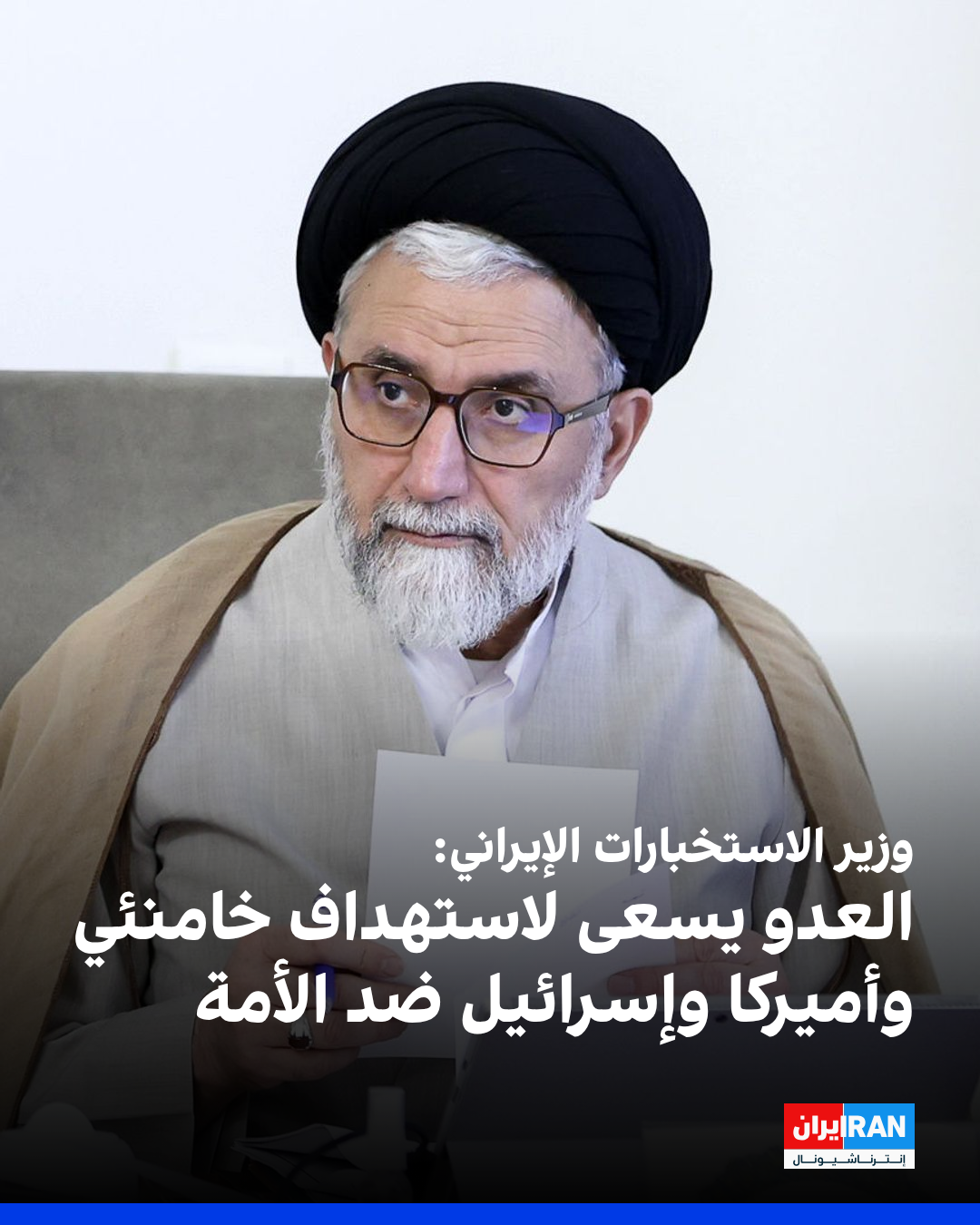قال وزير الاستخبارات الإيراني، إسماعيل خطيب، إن "العدو يسعى لاستهداف المرشد علي خامنئي، والمضي في اتجاه يقضي على هذا المحور، الذي يمثل الوحدة والانتصار والتقدم والثبات والمقاومة في البلاد، أحيانًا عبر الاغتيالات وأحيانًا عبر الهجمات المعادية في الداخل أيضًا".