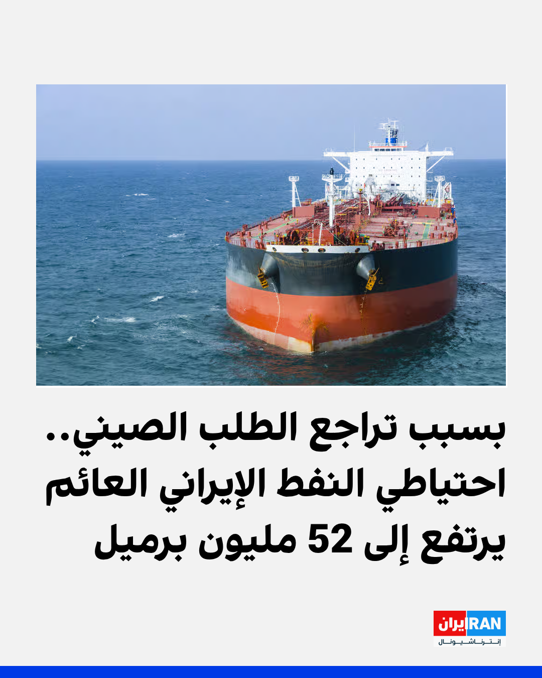 أفادت شركة "كبلر" المتخصصة في رصد شحنات النفط، بأن "كميات النفط الخام الإيراني المخزنة على الناقلات العائمة ارتفعت إلى 52 مليون برميل، وهو أعلى مستوى في عامين ونصف، مما يشير إلى تراجع الطلب الصيني على النفط الإيراني".