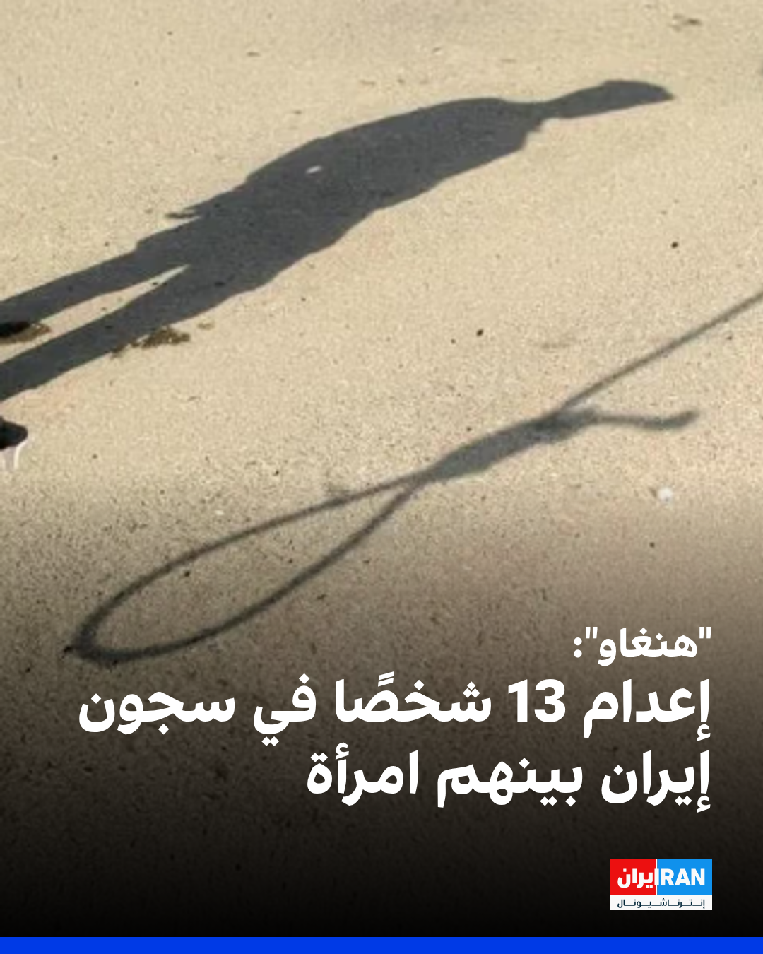 أفادت منظمة "هنغاو"، المعنية بحقوق الإنسان في إيران، بأن 13 سجينًا، من بينهم امرأة، تم تنفيذ حكم الإعدام بحقهم في سجون: إسفراین، شيراز، أصفهان، مشهد، بجنورد، كرج، خرم آباد، كركان، قزوين وبيرجند.