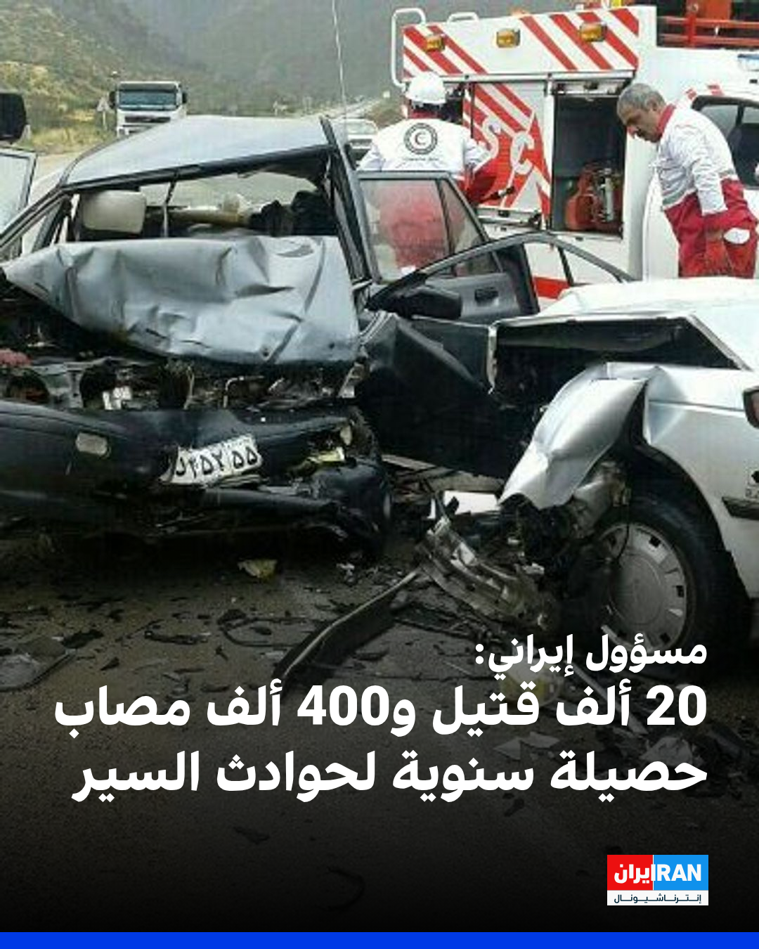 أعلن نائب رئيس شرطة المرور في إيران، حسن مؤمني، أن حوادث السير في البلاد تُودي بحياة 20 ألف شخص وتُصيب 400 ألف آخرين سنويًا. ووفقًا لمؤمني، فإن ما بين 10 و15 في المائة من المصابين يصبحون من ذوي الإعاقة.