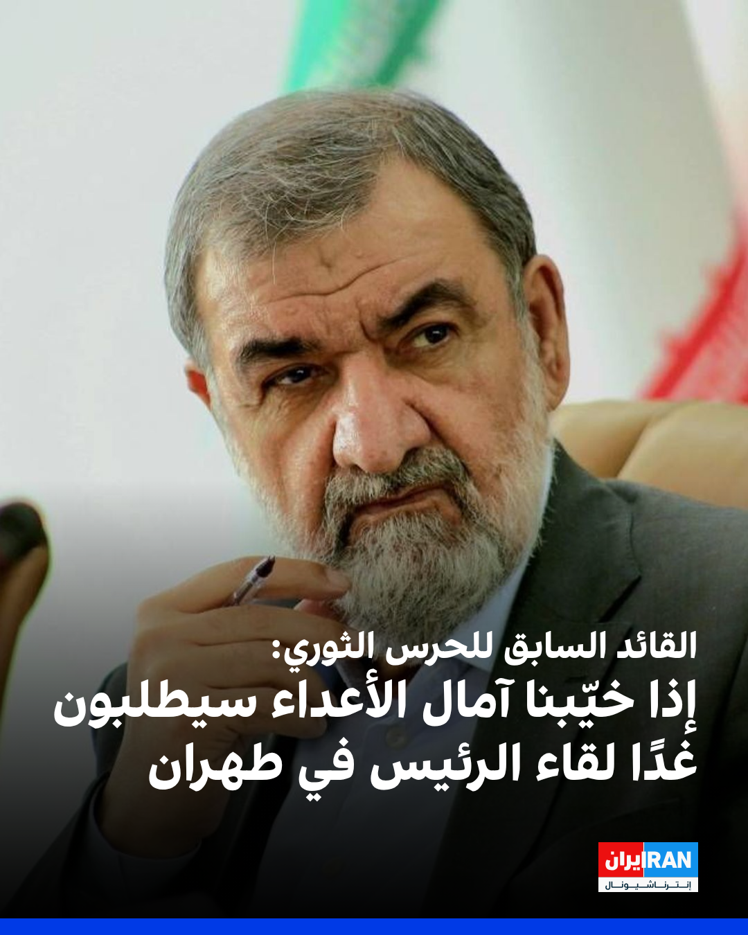 أشار القائد العام السابق للحرس الثوري الإيراني، محسن رضائي، إلى "حرب الـ 12 يومًا"، والمحادثات بين طهران والدول الغربية، قائلاً: "إذا أحبطنا آمال الأعداء إلى الأبد، فسيأتون غدًا إلى طهران طالبين لقاء الرئيس".