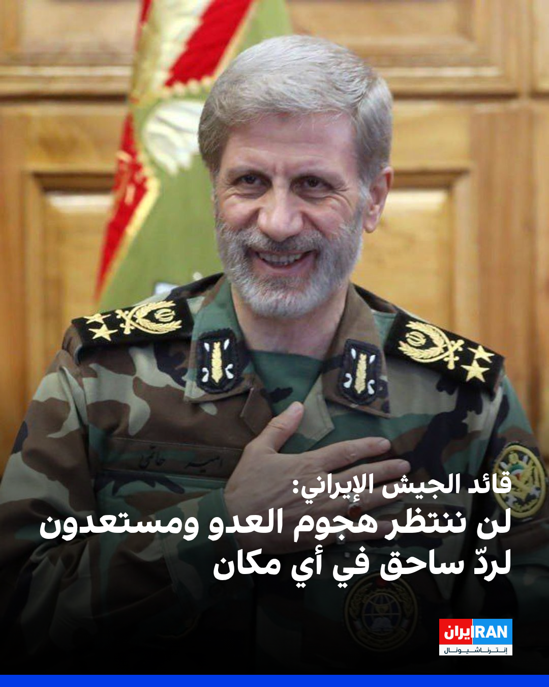 قال القائد العام للجيش الإيراني، أمير حاتمي: "لن ننتظر حتى يهاجمنا العدو، بل نمتلك الجاهزية الكاملة لتوجيه أي ردّ قاطع وساحق في أي نقطة تمسّ مصالحنا الوطنية".