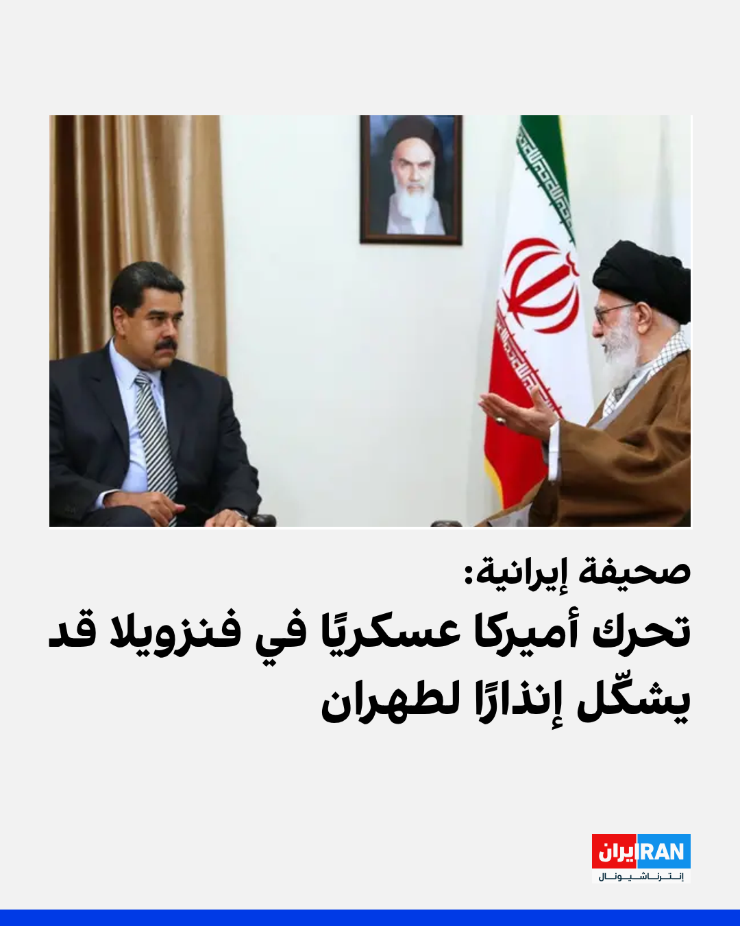 أشارت صحيفة "طهران تايمز" الناطقة بالإنكليزية التابعة لمنظمة الدعاية الإسلامية، إلى تزايد احتمال قيام الولايات المتحدة بعمل عسكري ضد فنزويلا، وذكرت أن "نظرة إيران إلى تطوّرات فنزويلا لا تقتصر على بلد واحد، بل تُعدّ جزءًا من فهم أوسع للتغيّرات في النظام العالمي".