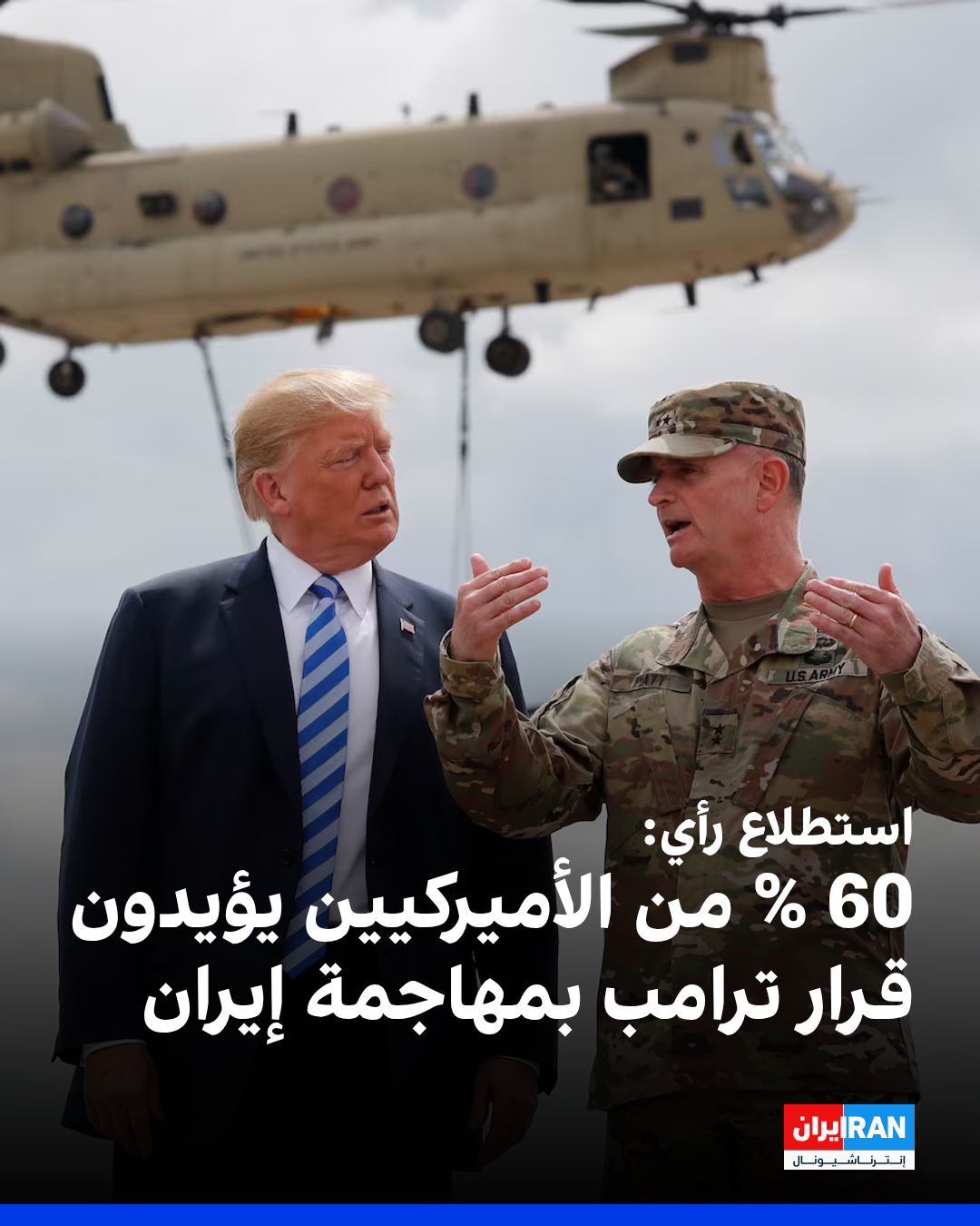 وفقًا لاستطلاع للرأي نشرته مؤسسة "رونالد ريغان" الأميركية، حظي القرار الذي اتخذته إدارة ترامب، بشن هجوم على المواقع النووية الإيرانية، خلال الحرب التي استمرت 12 يومًا بدعم 60 في المائة من الأميركيين.