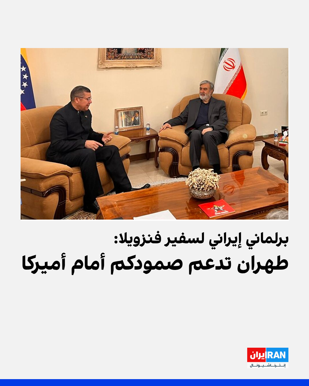 وأضاف مخاطبًا السفير الفنزويلي: "ما دمتم صامدين في مواجهة الولايات المتحدة، فإن طهران ستكون داعمة ومساندة لكم".