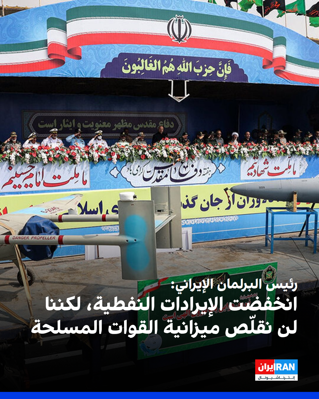 قال رئيس البرلمان الإيراني، محمد باقر قاليباف: «في مجال العملة الصعبة واجهنا عدم تحقّق بسبب انخفاض عائدات النفط، لكن في اجتماع رؤساء السلطات تم التأكيد على أن هذا النقص لا ينبغي أن يشمل ميزانية القوات المسلحة، وأن يتم تعويض النقص من قطاعات أخرى».