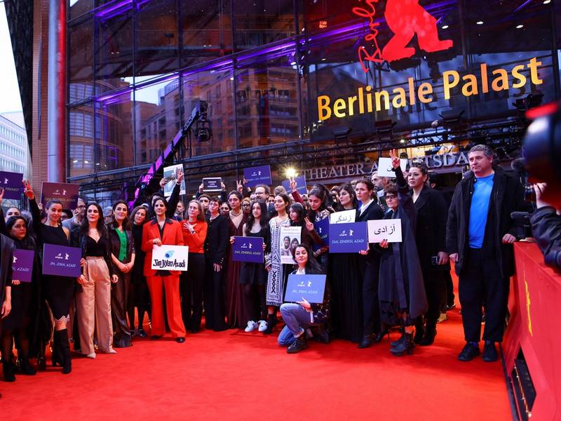 Dozens of actors and filmmakers gathered on the Berlinale's red carpet on Saturday to show solidarity with anti-government protesters in Iran.
