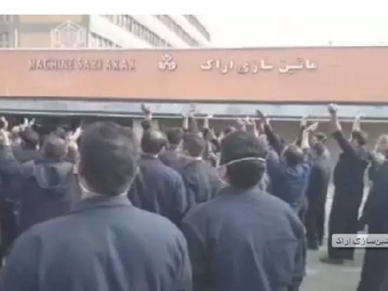 Protesting workers at Iran's Arak Machinery Manufacturing who are refusing to work over wage disputes reached new levels of intensity on Thursday.