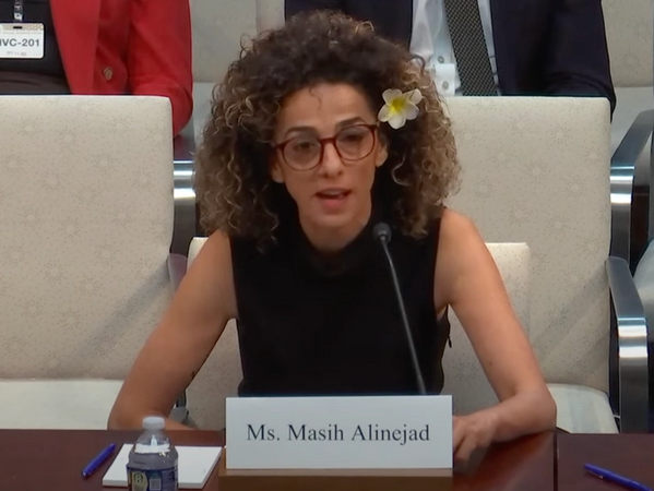 During the session, titled Iran’s Escalating Threats: Assessing US Policy Toward Iran’s Malign Activities, Alinejad also revealed that earlier this year the White House had warned her of at least 31 threats against her life.