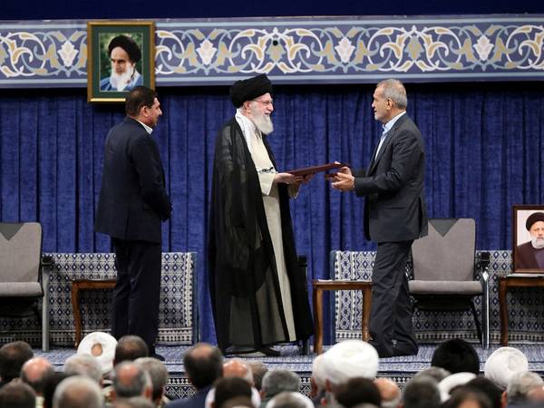 Iran's Supreme Leader Ali Khamenei gave the official mandate for the presidency to Masoud Pezeshkian on Sunday in a ceremony attended by various officials and dignitaries.