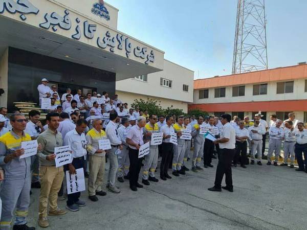 The staff at the refineries of the South Pars Gas Complex (SPGC) organized a protest gathering on Tuesday, driven by economic grievances and the incomplete payment of wages, as they sought to address and pursue their demands.