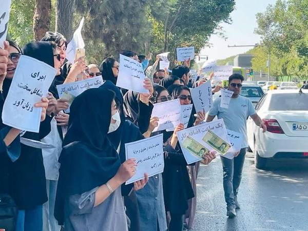 In Qom, nurses rallied with slogans demanding justice and the recognition of their rights, while in Kashan, demonstrators gathered at Beheshti Hospital protesting mandatory overtime and what they described as a lack of justice following their efforts during the COVID-19 pandemic.