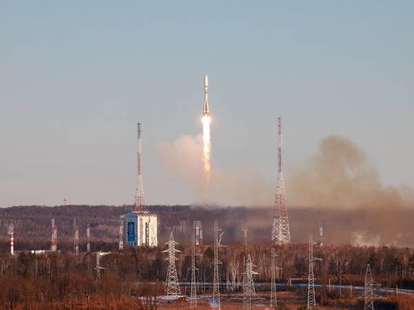 The Soyuz-2.1 spacecraft lifted off from Russia's Vostochny Cosmodrome Tuesday to take satellites designed to monitor the space weather to the Earth's ionosphere, where the atmosphere meets space.