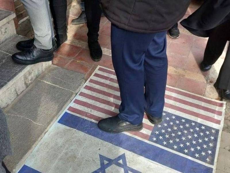 A US flag that had previously been painted on the ground in the courtyard of the Iranian president's office to be trampled by visitors, has now been removed.