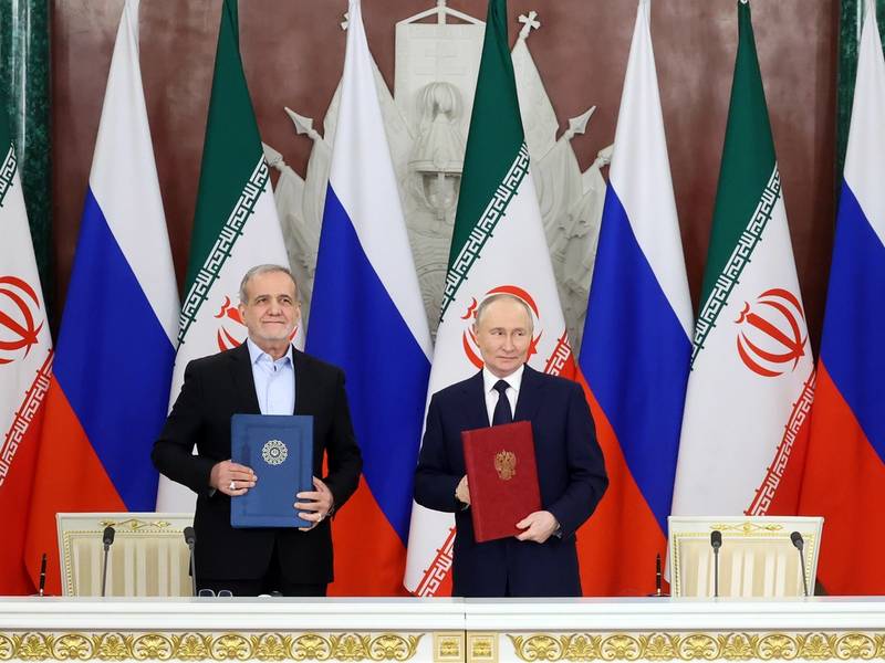Russian President Vladimir Putin and his Iranian counterpart Masoud Pezeshkian signed a comprehensive strategic partnership agreement in Moscow on Friday.